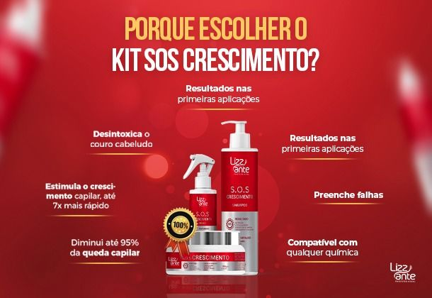 O Kit S.O.S Crescimento é um tratamento profissional e completo que combate a queda capilar e acelera o crescimento dos fios até 7x mais rápido!